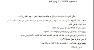نظرا لسياسة مديرية الدراسات بالجامعة توحيد رزنامة الأعمال البيداغوحية على مستوى كل الكليات وذلك بمركزية …