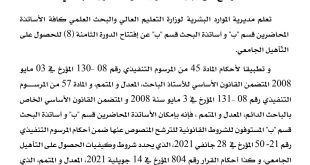 تعلن نيابة العمادة للتكوين فيما بعد التدرج و البحث العلمي والعلاقات الخارجية عن مناقشة رسالة …