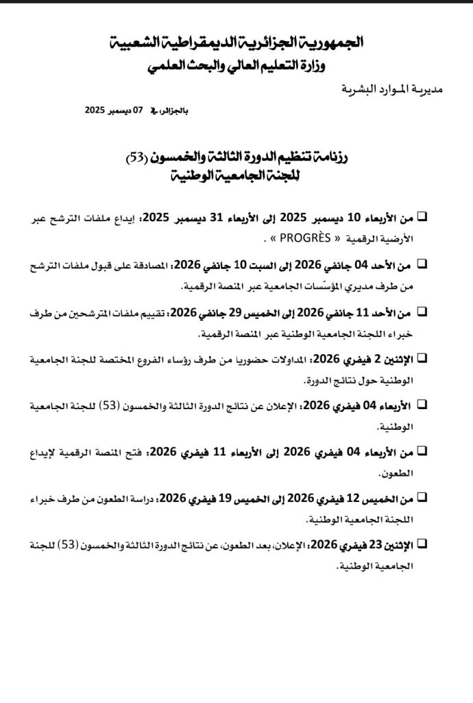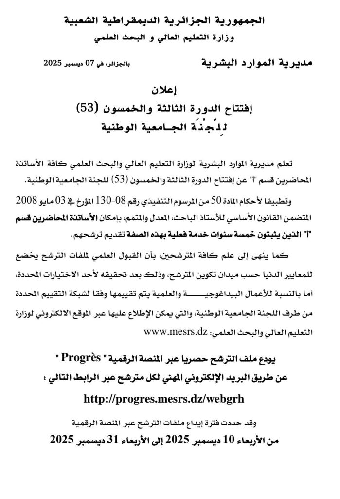 إعلان عن افتتاح الدورة 53 للجنة الجامعية الوطنية