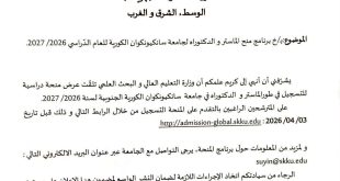 إعلان هام من نيابة العمادة لما بعد التدرج والبحث العلمي والعلاقات الخارجية: