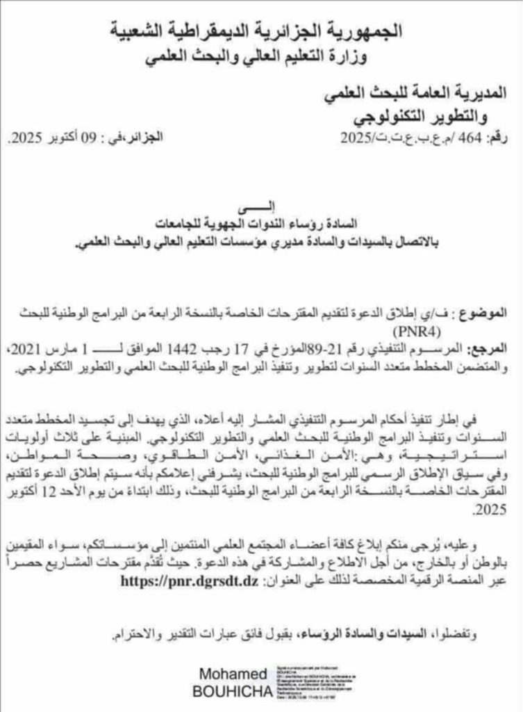تقديم المقترحات الخاصة بالنسخة الرابعة من البرامج الوطنية للبحث PNR4