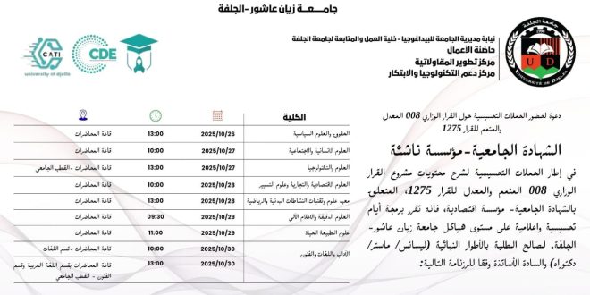 يتقدم عميد كلية الآداب واللغات والفنون بجامعة الجلفة بأصدق التهاني وخالص التبريكات إلى أساتذة الكلية …